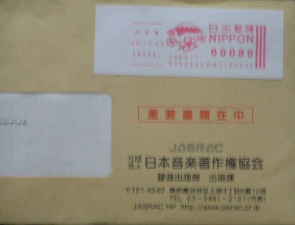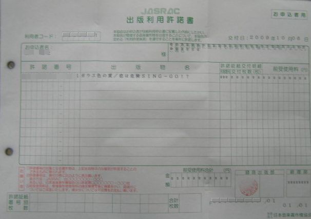 『天国』は著作権協会からの許諾書である。